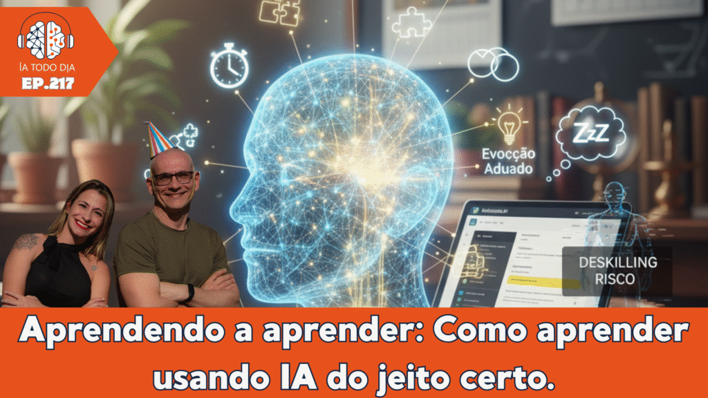 Neste episódio, Helena Ferraz e Aydamary Faria-Jr discutem como aprender de forma ativa e eficiente, com ou sem o uso de inteligência artificial. Aydamari explica que o aprendizado exige esforço, sono adequado e prática deliberada — não existe IA que substitua o ato de “sentar e estudar”. Ele apresenta métodos como evocação ativa, interleaving, chunking e repetição espaçada, destacando que o esquecimento é natural e deve ser combatido com revisões. Mostra ainda como usar o Notebook LM do Google para transformar o estudo em processo ativo, e alerta que o uso excessivo de IA pode causar “deskilling”, a perda de habilidades.